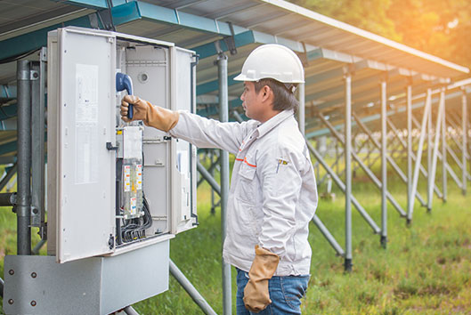 電線を流れる高圧の電気を、家庭やオフィスなどで使う100~200ボルトの電気に変換します。マンションやビルなど、工事の現場に仮設電気を引く工事も行います