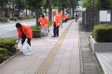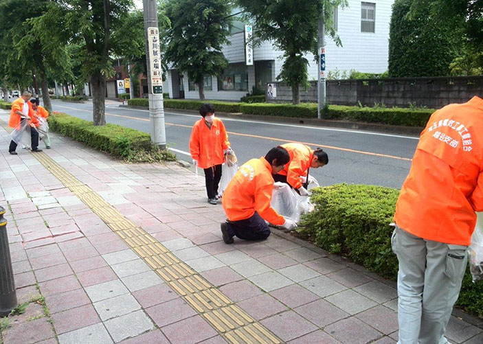 毎月1度の地域貢献事業。今回は、5月に行われた埼玉県電気工事工業組合の吉川駅前美化清掃に参加しました。